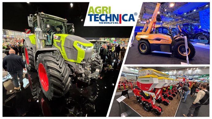 Aujourd’hui, nous vous proposons de nous suivre dans les allées d’Agritechnica pour découvrir le tracteur Claas Axion 9, le chargeur télescopique hybride de New Holland et le semoir monograine Puro de Pöttinger.